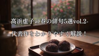 春の俳句 高浜虚子の春の俳句5選vol.2-代表作をわかりやすく解説! 高浜虚子の春の俳句5選vol.2を、代表作とともにやさしく解説。シリーズで楽しめる、春の情景と虚子のまなざしを紹介します。 2026.03.17 俳句春の俳句高浜虚子