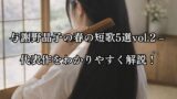 もし冬の作品だけでなく、一葉が見つめた四季のうつろいをもっと味わいたい方は、春の短歌5選 や 夏の短歌5選 もあわせてご覧ください。