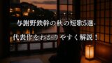 「北原白秋の秋の短歌5選 – 代表作をわかりやすく解説!」では、初心者の方にも楽しんでいただける内容で、短歌の魅力や奥深さに触れることができます。