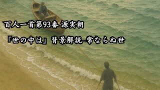 百人一首 百人一首第93番 源実朝『世の中は』背景解説–常ならぬ世 百人一首第93番 源実朝「世の中は」を背景とともに解説。常ならぬ世への思いを、渚を漕ぐ海人の小舟に託した無常観を読み解きます。 2026.01.29 和歌百人一首